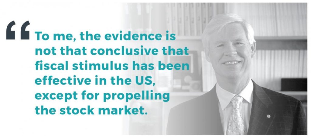 I have spoken very disapprovingly about the austerity measures and rhetoric that have dominated European policy discussions. However, when I am asked about the US, I say there was a period – a very short amount of time ago – when the Tea Party was pushing for no debt, no tax increases – the small government idea. That has been turned upside down with the tax cut and the enormous growth in the deficit. I am not convinced the US economy, given that it has been engaged in substantial fiscal stimulus, needs monetary policy easing in addition. To me, the evidence is not that conclusive that fiscal stimulus has been effective in the US, except for propelling the stock market.